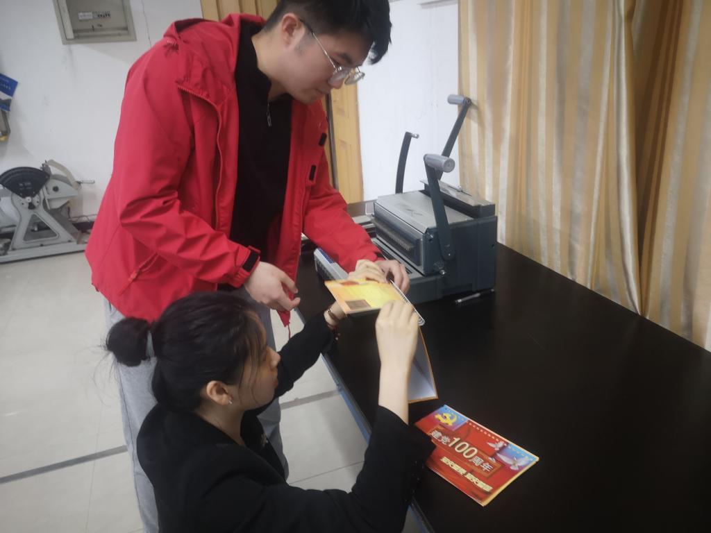 工学院本科生在专业老师的指导下结合《数字印刷》和《印后加工工艺》实验课中相关技术制作了喜迎建党100周年的台历、挂历和宣传页,讲述中国共产党波澜壮阔的发展历程,追忆百年前的红色足迹,感怀革命青年的爱国情怀。
