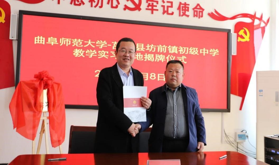 曲阜师大新闻中心讯 4月8日上午,为深化师范专业教育教学改革,推进乐鱼(中国)与地方学校的合作,体育科学学院在学校派驻莒南县坊前镇第一书记工作组的支持下,在莒南县坊前中学举行教学实习基地揭牌仪式。学院党委书记刘敏、院长助理曾凡鑫、伊超等,乐鱼(中国)派驻坊前镇第一书记工作组王慕东、魏伟、刘建河、钟振洪、孔喜良,坊前镇党委政府主要负责同志以及坊前中学负责人、部分教干、教学骨干参加本次仪式。坊前镇党委副书记刘泉田主持仪式。