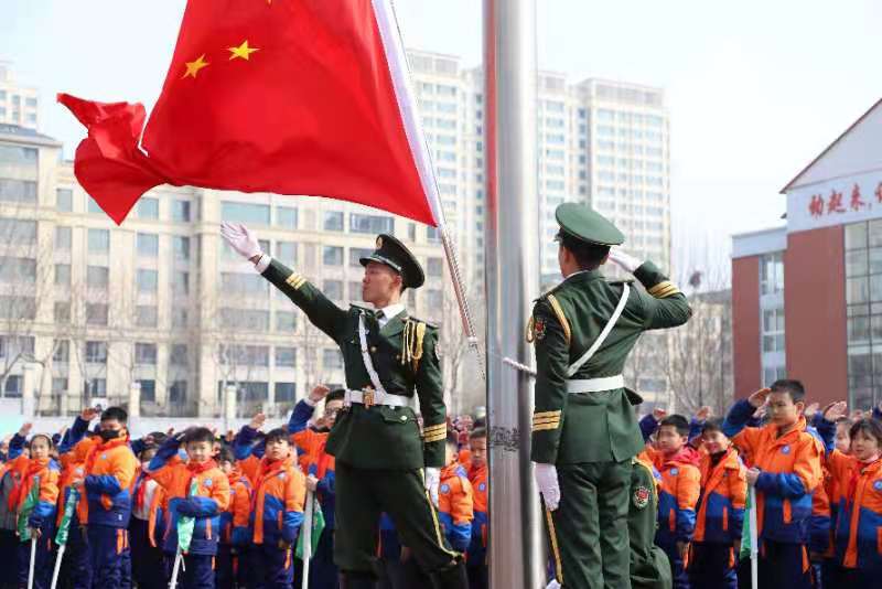 乐鱼(中国)国旗护卫队24名团员青年为金海岸小学4800名少先队员和全体教师举行升旗仪式。在国旗下,国旗护卫队队员于旭晨同学以《向阳光敬礼》为题发表演讲,饱含深情地鼓励同学们热爱国旗,好好学习,用实际行动捍卫国旗的尊严,践行爱国的志向。