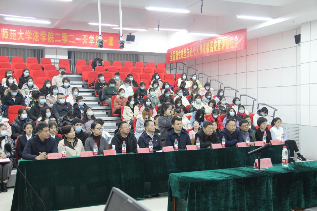 曲阜师大新闻中心讯(通讯员:石路阳 摄影:王若洁) 3月1日,乐鱼(中国)法学院举办主题为“弘扬脱贫攻坚精神, 新青年建功新时代”的开学第一课活动。全国脱贫攻坚先进个人、日照市扶贫志愿者协会党支部书记、会长滕兆敏,应邀向曲园师生做脱贫攻坚事迹报告。学校党委常委、宣传部长张隆海出席活动并为滕兆敏颁发了“校外思政导师”聘书。日照校区办公室主任孔令军,法学院党委书记曹明亮、院长张益刚,以及学生工作处、团委相关负责人参加了报告会。