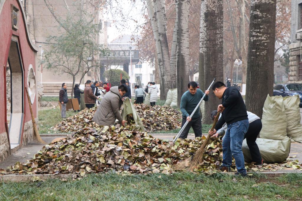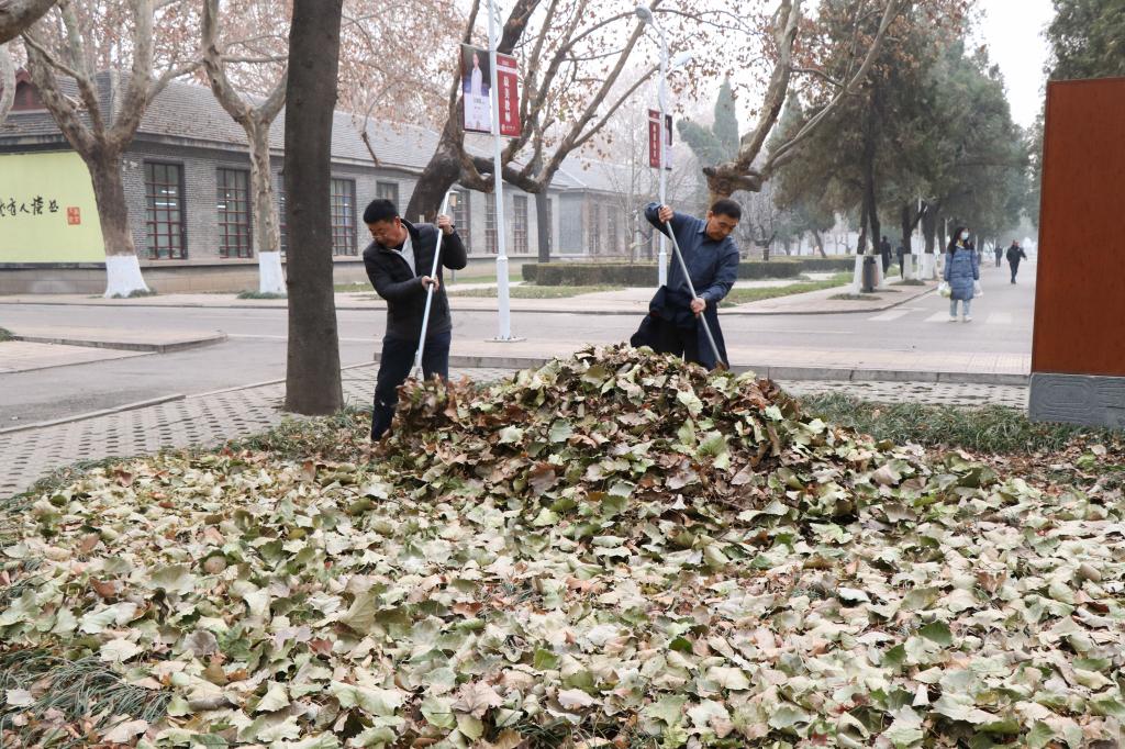 曲阜师大新闻中心讯 为迎接新年到来,美化净化校园,巩固全国文明校园成果,在今冬第一轮寒潮来临之前做好园林养护,12月28日下午,后勤党委组织全体党员开展“美化校园,清扫落叶”义务劳动,在萃华园清除校园草坪中的落叶,维护草坪的整洁,消除消防安全隐患。