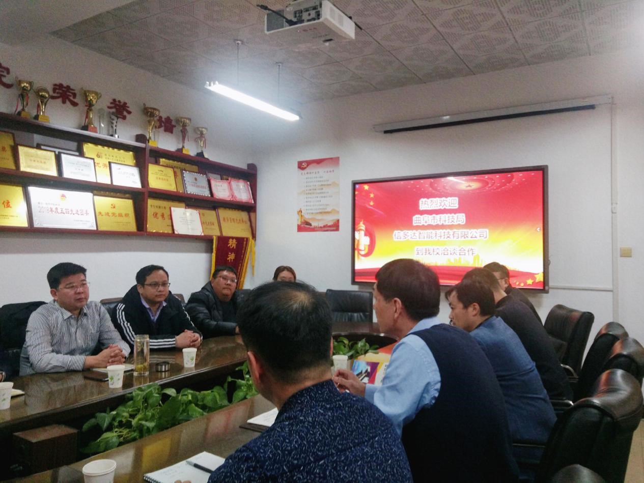 曲阜师大新闻中心讯(通讯员:高鹏)12月23日下午,乐鱼(中国)与曲阜市科技局、曲阜信多达智能科技有限公司在网络空间安全学院会议室举行校企合作洽谈会。曲阜市科技局局长谷传超、副局长李凯、高新技术科科长高文龙;曲阜信多达智能科技有限公司总经理陈国营、总工程师孙亮;科技处开发科科长朱年磊、网络空间安全学院党委书记田云飞、副院长倪建成出席洽谈会。