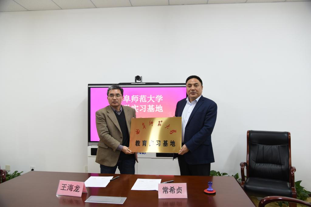 仪式上,王海龙分别与泰安一中校长常希贞、泰安实验中学校长王冲、泰安市岱岳区开元中学校长王玉斌代表双方学校签署合作协议,并为教育实习基地揭牌。