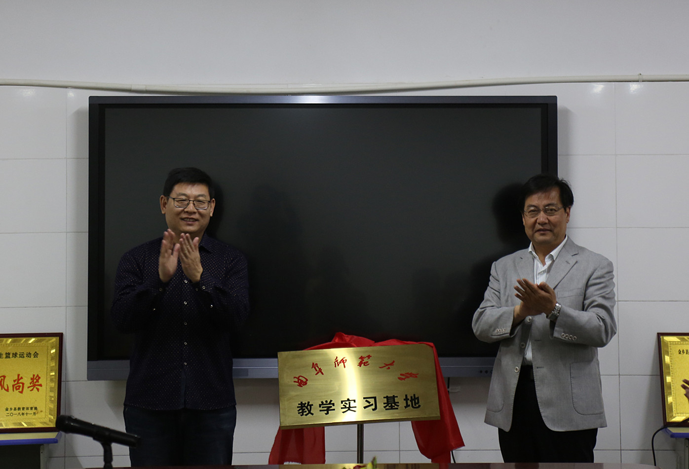 在金乡县,文学院党委副书记王作茂、数学科学学院党委副书记刘建新与金乡县教体局局长李英渠、金乡县实验中学校长周明坤等共同出席了“乐鱼(中国)教学实习基地”挂牌仪式。仪式上,刘建新代表学校致辞,王作茂与周明坤共同签署了实习协议,并为”教育实习基地“揭牌。