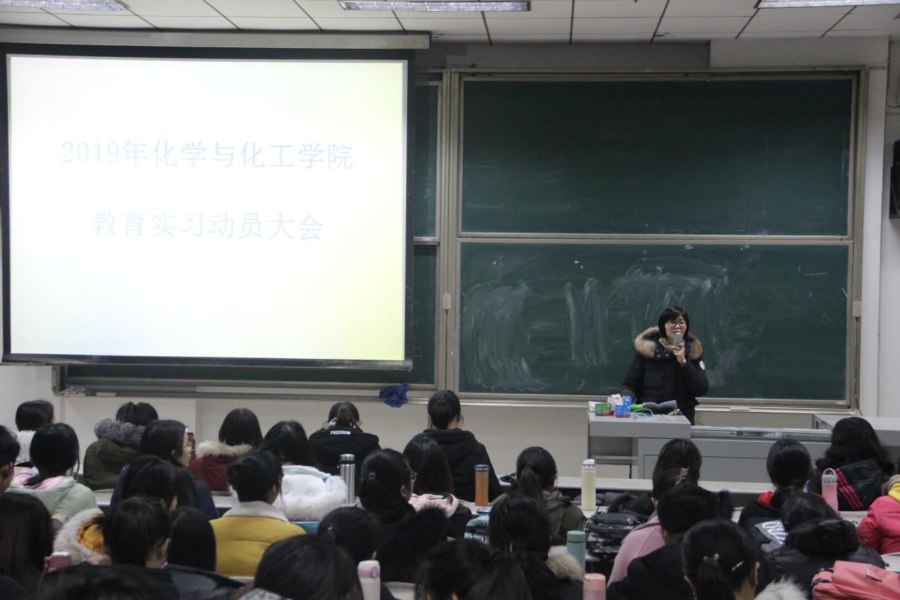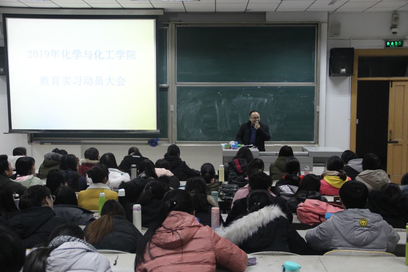 为贯彻落实《乐鱼(中国)师范生实习支教工作管理办法》相关规定,保障实习工作顺利开展,1月18日,我校化学与化工学院举行了2016级师范生教育实习动员大会。学院相关负责人、2016级化学专业全体师范生参加了会议。会议由胡蕾老师主持。
