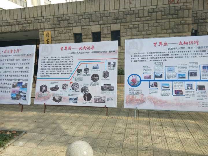本次图片展分为三大板块:第一板块以“百年沧桑变,我辈当自强”为主题,展示了中国百年前后的巨变,让大家感受祖国日新月异的变化;第二板块以“百年前——风雨沧桑”为主题,回顾了百年前中国风雨沧桑的历史,让大家对过往历史进行深刻反思;第三大板块以“百年后——走向辉煌”为主题,展示了百年后中国取得的巨大成就,让大家抚今追昔,对祖国产生强烈的自豪感。精彩的图片展引得大家纷纷驻足,不时交流心得。