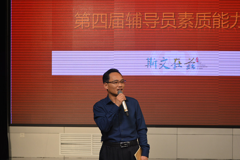 10月26日,我校第四届辅导员素质能力大赛决赛落幕。经过上学期初赛笔试阶段基础知识测试、网文写作的角逐,有10位来自各学院的一线辅导员进入决赛。南京航空航天大学马克思主义学院院长王智,山东高校德育研究中心主任、山东师范大学乐鱼官方网页版部长姚昌,我校乐鱼官方网页版部长纪洪涛,团委书记宋国栋,教育学院党委书记姜美颖,管理学院党委书记刘进,大学生思想政治教育研究中心主任王志华担任评委。