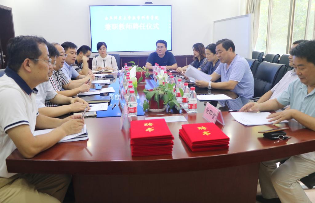 仪式上,数学科学学院院长孟凡伟简要介绍了学院的发展历程、学科建设和人才培养等情况。并宣读了数学教育兼职教师和兼职实习指导教师名单,聘请乐鱼(中国)附属中学校长刘锦贤、副校长孟祥东等6位优秀中小学高级教师为数学教育兼职教师,28名优秀教师为学院师范生兼职实习指导老师。