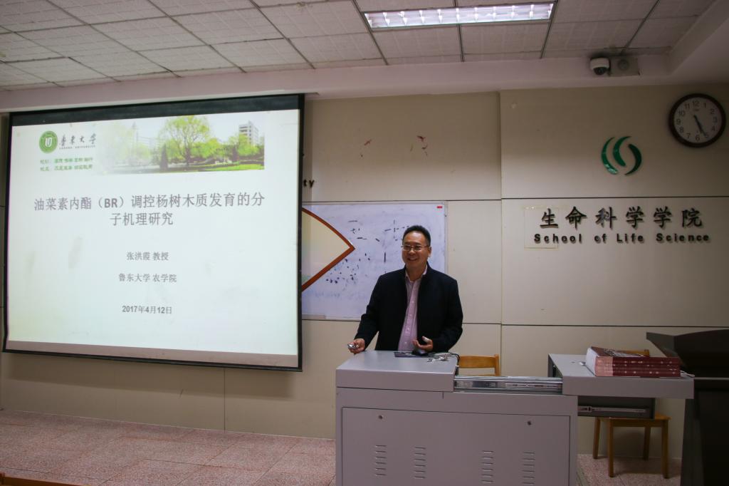 报告会上,张洪霞教授以《油菜素内酯(BR)调控杨树木质发育的分子机理研究》为题,深入浅出地为生科院师生介绍了实现树木、作物和园林植物耐盐性的分子生物学策略,悉心解答了师生在植物分子生物学实验技术方面的问题,为我校师生深入开展植物科学研究提供了思路上的启发。