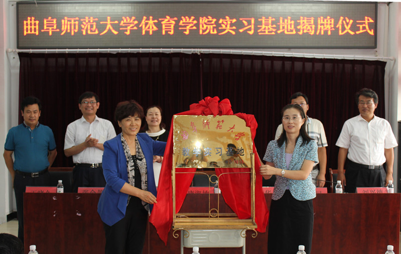 乐鱼(中国)体育科学学院胶州实习基地挂牌仪式于9月18日在胶州三中和三里河小学举行。我校副校长康淑敏、胶州市副市长姜青华出席揭牌仪式并为基地揭牌,我校教务处、体育科学学院、胶州体教局和胶州三中以及三里河小学负责人参加仪式。