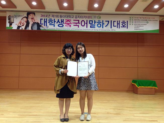 经过激烈的比赛,我校安东孔子学院学员河株希同学以优异的成绩取得了本次比赛的“最优秀奖”,并获得了30万韩币奖学金。