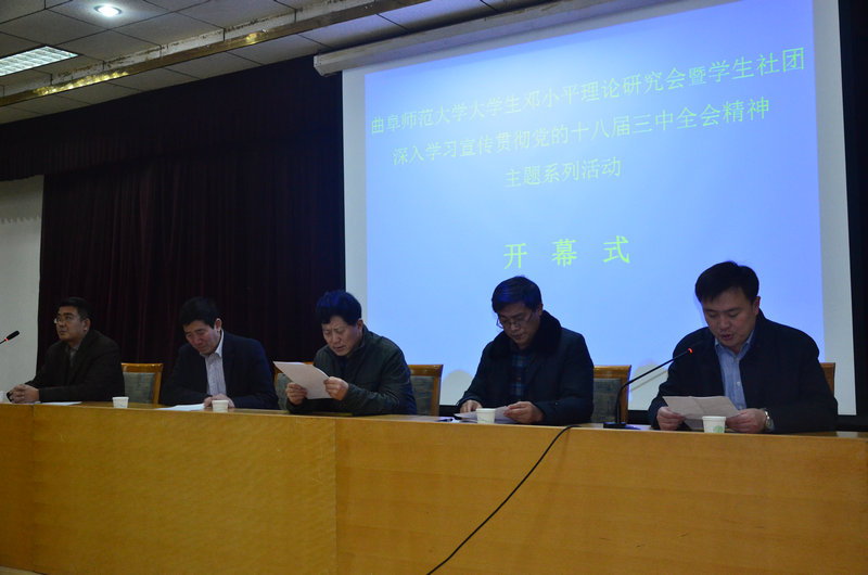 屈跃宽宣读了主题活动学习计划,其中包括开设学生社团骨干和邓研会会员学习培训班,开展十八届三中全会精神宣讲、征文等五项主题实践活动。宋德昭倡导同学们要把大学生个人发展与改革开放道路紧密结合,要认真研读十八届三中全会文件,要端正学习态度,做到学习、思考、实践的有机统一。