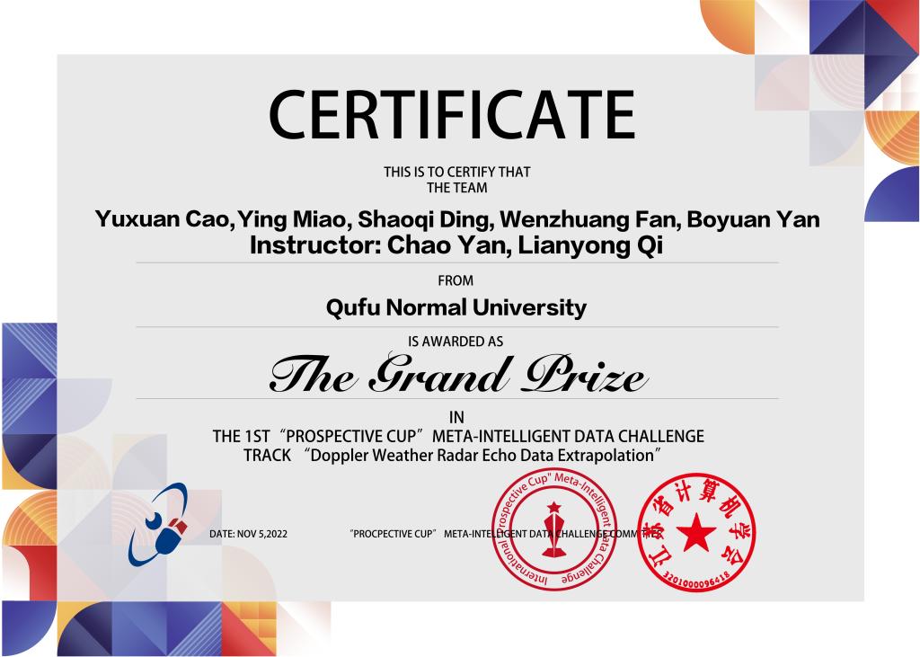 曲阜师大新闻中心讯 近日,由第十二届计算机工程与网络国际会议(CENet2022)发起的首届国际“远见杯”元智能数据挑战大赛(中国科协欧洲(比利时)海智创新创业基地、江苏省计算机学会主办)在海南省海口市落下帷幕。大赛采取赛道制,分为“火灾下混凝土温度孔压时空演化学习”、“音乐驱动的指挥动作生成”、“沉积学知识图谱中实体识别”、“多普勒天气雷达回波数据外推”四个赛道。其中,由乐鱼(中国)计算机学院闫超、齐连永老师指导,曹宇轩、苗影、丁少奇、樊文壮和闫博远等研究生完成的参赛作品:A Doppler Weather Radar Echo Data Extrapolation Model Based on MultiConvARIMA,喜获大赛唯一特等奖(奖金1万元)。