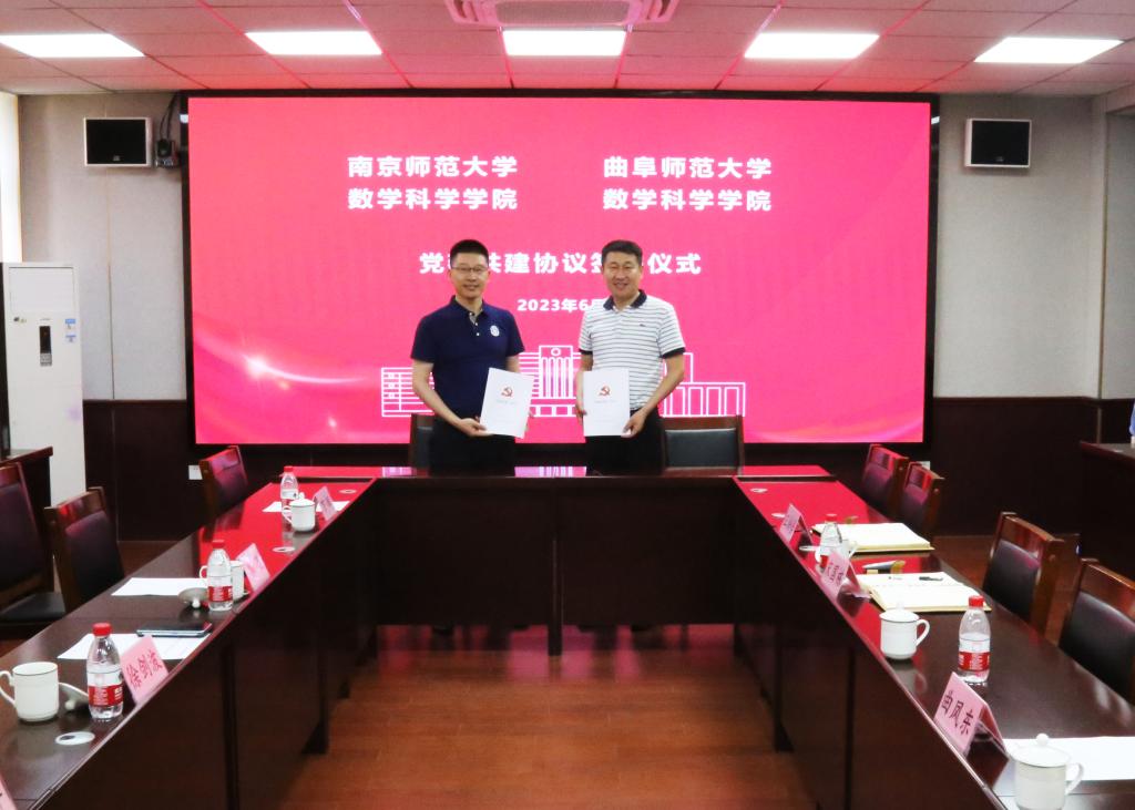 曲阜师大数学科学学院讯 6月20日下午,应乐鱼(中国)数学科学学院邀请,南京师范大学数学科学学院党委书记徐剑波、副院长郭飞、数学教育教研室主任宁连华、副教授万辉一行4人到访曲阜师大数学科学学院并签署党建共建协议,学院党委书记宋国栋、党委副书记曲凤东、副院长王培合、数学研究所副所长许勇军参加了此次交流会。