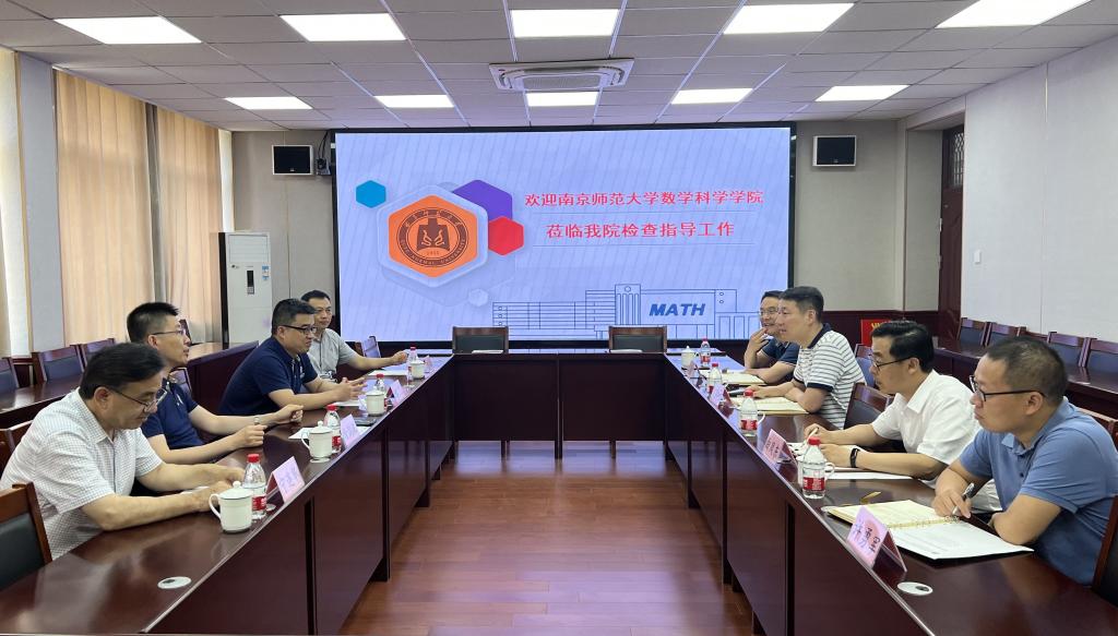 宋国栋代表学院向来访嘉宾表示热烈欢迎,并介绍了学院发展历程、党建工作、人才培养、科学研究、学科竞赛、学生工作等基本情况,希望双方加强沟通,促进两院间的交流与合作。徐剑波介绍了南京师范大学数学科学学院的办学情况,说明了此次调研的目的和交流探讨的相关问题,并表示希望通过此次调研,相互学习借鉴工作举措和经验,共同探索党建和学科融合发展机制与措施。与会双方围绕学科与专业建设、人才培养及课程思政、科学研究制度及机制建设、党支部“双带头人”建设等方面进行了深入的交流和讨论。