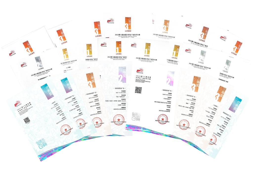 传媒学院讯 近日,第15届“中国大学生好创意”全国大学生广告艺术大赛全国总评审结果揭晓。曲阜师大传媒学子在比赛中获全国奖38项,其中二等奖3项,三等奖9项,优秀奖26项;在本届比赛的山东赛区评审中,获一等奖5项,二等奖15项,三等奖25项,优秀奖88项;获奖作品涵盖微电影、动画、平面广告等不同种类,传媒学子参赛人数和获奖率再创新高,获奖等级及国家级获奖数量在全省近百家参赛高校中稳居前列。