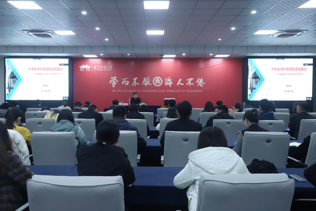 曲阜师大学生工作处讯 为提高曲阜师大参与学科竞赛的质量,激发广大师生参加学科竞赛的热情,积极推动学校学科竞赛工作,3月22日,青岛科技大学创新创业教育学院常务副院长褚庆柱受邀作了题为《大学生学科竞赛的逻辑路径——以中国国际大学生创新大赛为例》的专题报告。