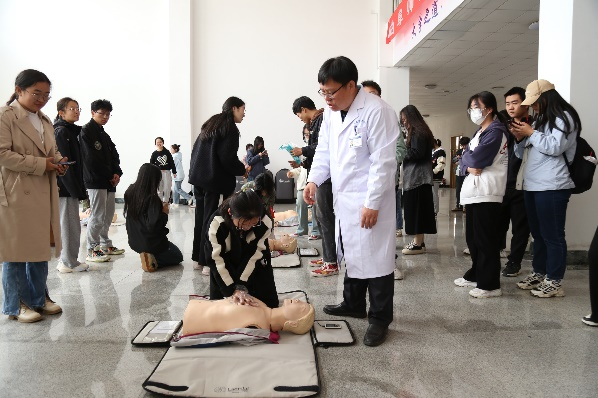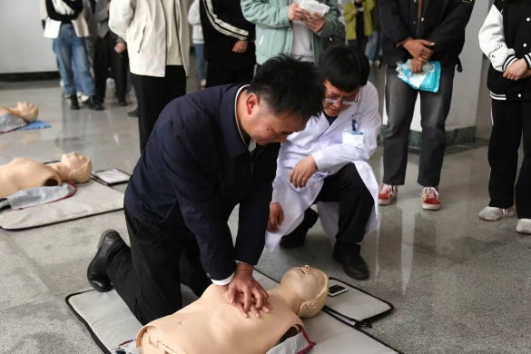 孟令新对此次急救知识技能培训表示期待,希望参训师生能够在培训中有所收获。培训中,秦一杰分别从院外急救的定义和意义、心肺复苏术、特殊损伤的救治、脑卒中的识别与救治等方面,详解讲解了高校师生日常学习、生活环境下可能发生的危急症、意外伤害,普及救护知识,引导广大师生掌握正确的基本救护技能,争取“救命的黄金时刻”,具有很强的现实意义和教育意义。