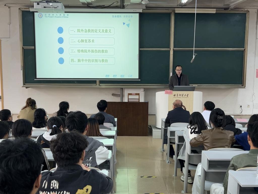 曲阜师大地理与旅游学院讯 为普及基本救护知识,深入推进平安校园和健康校园建设,增强高校师生面对突发急救事件的现场应急救护和加强自救、互救、急救的能力,4月10日,由校团委主办、地理与旅游学院团委承办的乐鱼(中国)日照校区2024年急救知识技能培训顺利举行。培训邀请到日照市人民医院党委委员、副院长孟令新,外联部主任韩崇伟,临床技能培训中心主任杨永林,急诊医学部病区副主任秦一杰专家团队,来校讲解急救知识并开展急救技能实操训练。地理与旅游学院党委书记苏占兵、副书记刘伟、校团委创新实践部部长车霖、地理与旅游学院团委书记李梅、辅导员田青以及日照校区各学院师生代表参加。