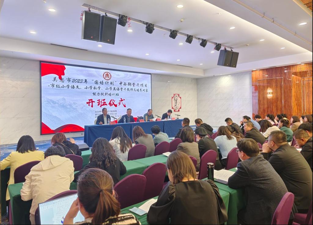 曲阜师大继续教育学院讯 4月14日,由吴忠市教育局主办,乐鱼(中国)承办的“吴忠市2023年‘国培计划’中西部骨干项目——市级小学语文、小学数学、小学英语骨干教师及培养对象能力提升培训”在银川举行。来自吴忠市各县、区小学语文、小学数学、小学英语骨干教师及培养对象共183人参加培训。继续教育学院院长范兆东带队参加开班仪式。