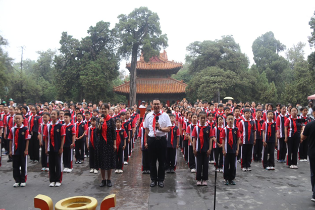 5月26日,学校组织学生走进世界文化遗产——孔庙,举办“文化传承 爱心启航”儒学体验活动。孔庙大成殿前,在学校老师的带领下,全体师生一起诵读《论语》,并向至圣先师——孔子,表达来自少年儿童的崇高敬意。在随后的活动中,学生利用黏土创作了具有儒家特色的文创作品,并在现场向游客进行了介绍和义卖。通过这些活动方式,引领学生感悟儒家思想魅力,践行儒学精髓,加深了对中华优秀传统文化的认知和理解。