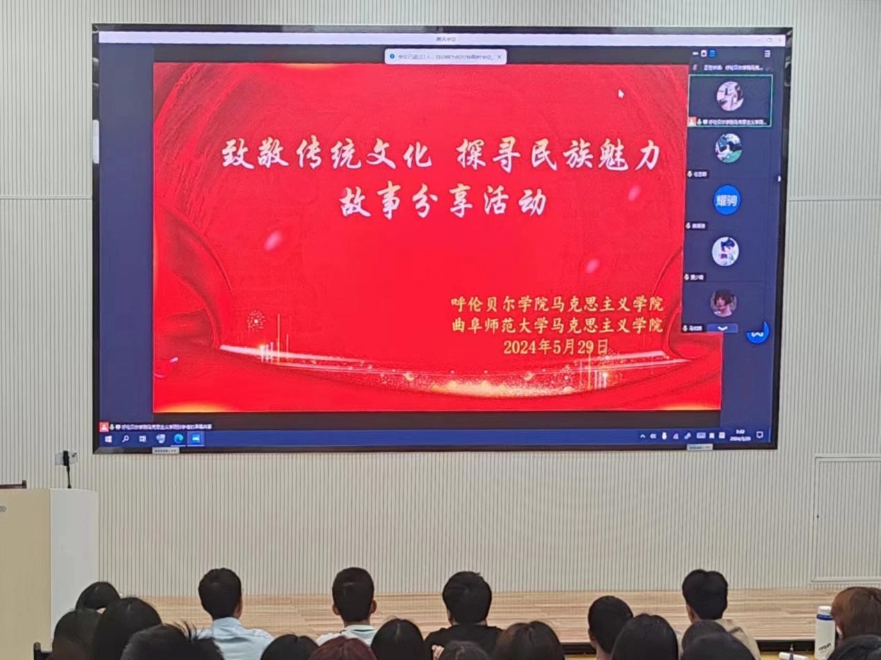 曲阜师大马克思主义学院讯 为弘扬和传承中华优秀传统文化,培育爱国情感和民族精神,5月29日,乐鱼(中国)马克思主义学院与呼伦贝尔学院马克思主义学院以线上线下结合的形式,共同举办“致敬传统文化,探寻民族魅力”故事分享活动。
