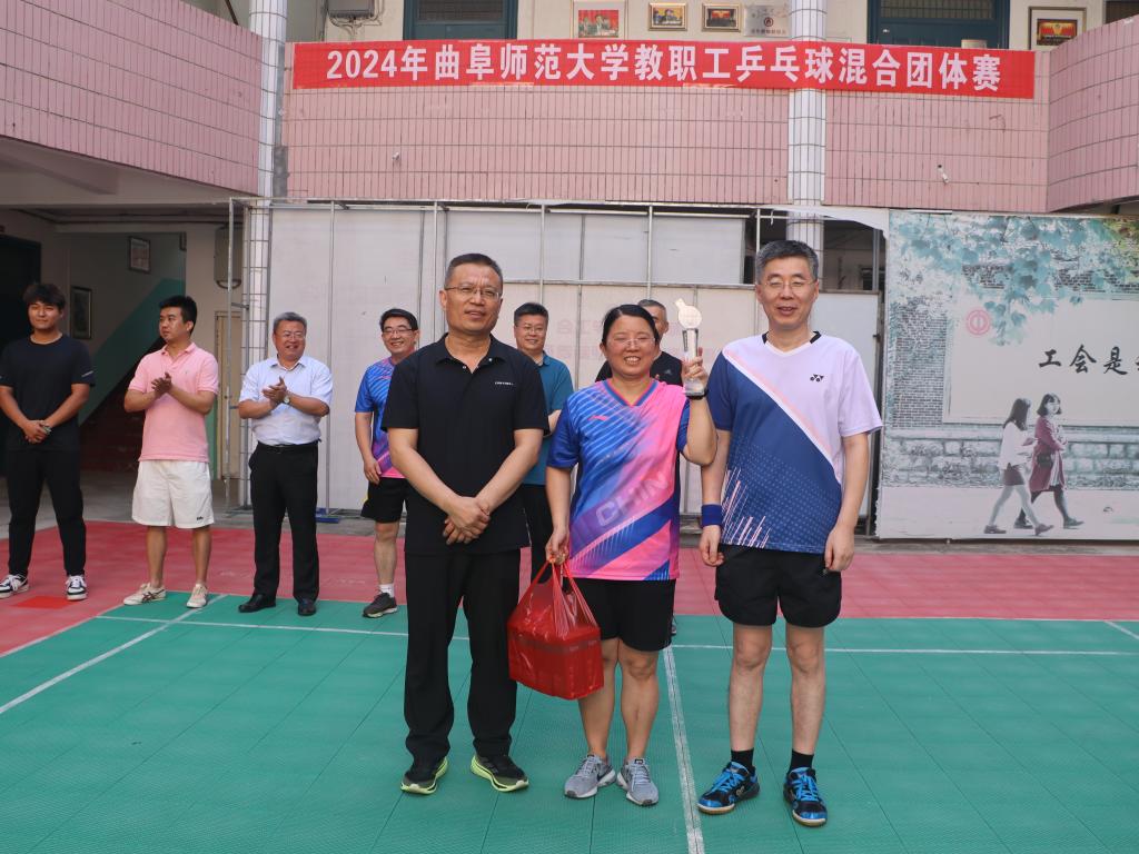 本次比赛秉承团结合作、勇于创新、拼搏进取、再立新功的宗旨,12支参赛代表队相互切磋、相互交流。从6月22日起,经过两天的激烈角逐,参赛队伍赛出了友谊,赛出了水平,展现了曲园人顽强拼搏、奋勇争先的风采和积极向上、不断进取的精神风貌。闭幕式上,裁判长刘成宣读了比赛成绩。图书馆、历史文化学院、化学与化工学院、后勤基建、网络空间安全学院、机关党委、生命科学学院、美术与书法学院依次获得第一名至第八名。机关党委书记刘建新为参赛队伍颁发纪念品,图书馆馆长王东波、美术与书法学院党委书记王慕东、化学与化工学院党委书记赵琪、体育教学部副主任李思民、曲阜千艺轩木工坊经理张亚轩、亚飞乒乓球俱乐部总经理王亚飞为前三名代表队颁发奖杯和纪念品。工会主席廖志强在闭幕词中代表工会向各参赛队和相关部门表示诚挚的感谢。