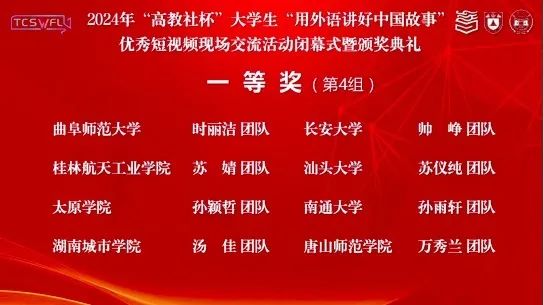 曲阜师大外国语学院讯 近日,由中国英汉语比较研究会指导,南京大学、湖南大学主办,高等教育出版社协办的2024年“高教社杯”大学生“用外语讲好中国故事”优秀短视频现场交流活动举办。曲阜师大外国语学院2022级英语师范生时丽洁及其团队成员张立鑫、陈佳悦、董雨琦在吉锡媛和刘萍老师指导下荣获山东省特等奖、国家级一等奖,乐鱼(中国)获优秀组织奖。
