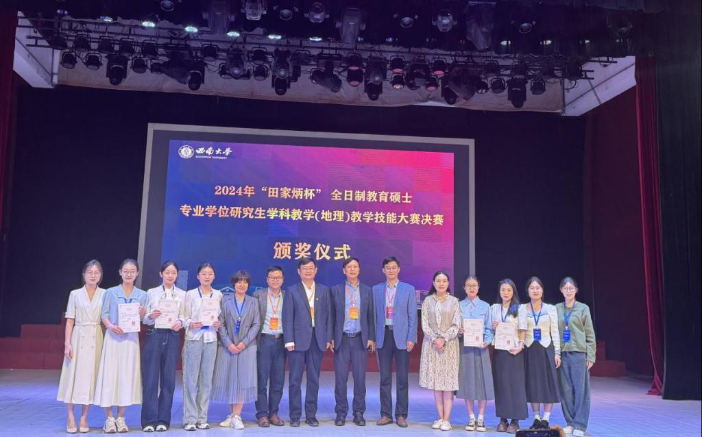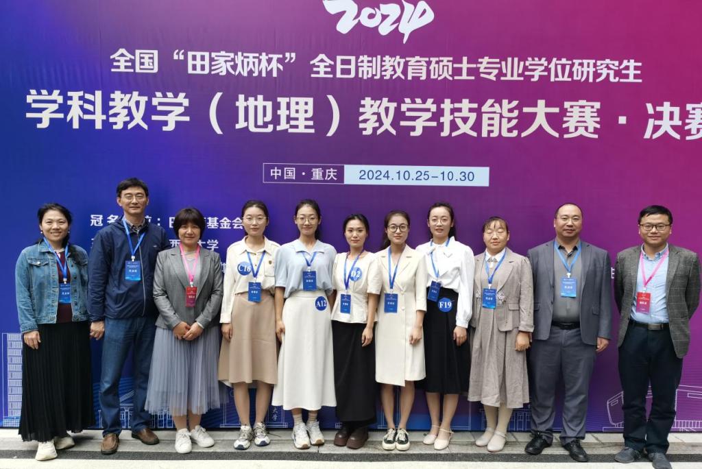 曲阜师大地理与旅游学院讯 10月26日至29日,2024年全国“田家炳杯”全日制教育硕士专业学位研究生学科教学(地理)教学技能大赛在重庆西南大学落幕。乐鱼(中国)地理与旅游学院5名研究生全部进入决赛,2022级研究生张淑君荣获一等奖,2023级研究生刘雅荣获二等奖,2023级研究生李雅洁、李姗姗、时永欣荣获三等奖,周维国老师、张学波老师荣获“优秀指导教师”奖。曲阜师大获奖总数位列全国第一。