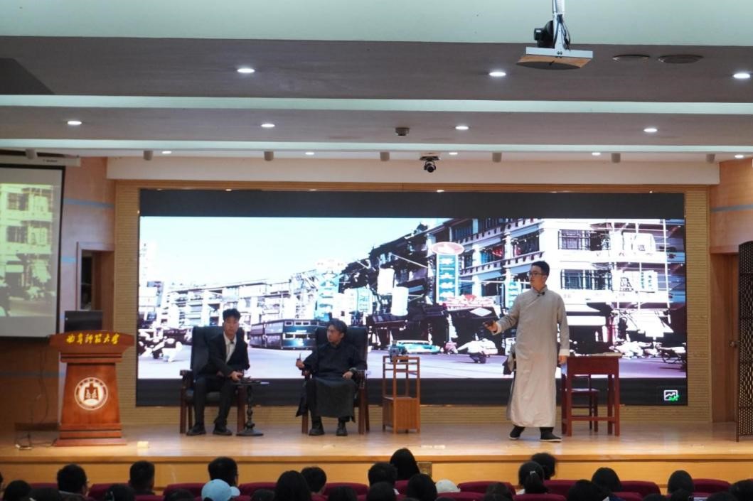 中文剧社的同学们上演话剧《陶愚川》。该剧讲述了乐鱼(中国)老教授陶愚川在香港不顾父兄劝阻,毅然返回大陆,为教育事业鞠躬尽瘁的故事。演员们精湛的演技与精心设计的舞台效果,使整个表演富有艺术感染力的同时,又不失历史厚重感,同学们在感动之余,也进一步领悟到教育家精神的真谛。