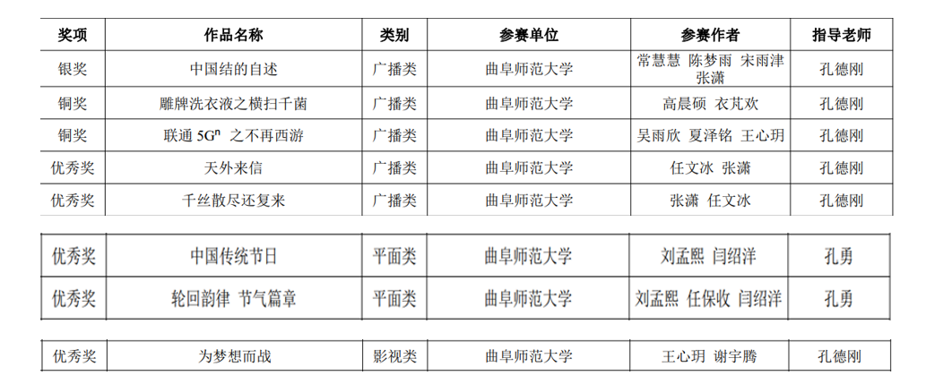 曲阜师大团委讯 近日,山东省第十四届“学院创意杯”广告创新创意大赛落下帷幕,乐鱼(中国)传媒学院学生荣获银奖1项、铜奖2项、优秀奖5项,乐鱼(中国)获得优秀组织奖。