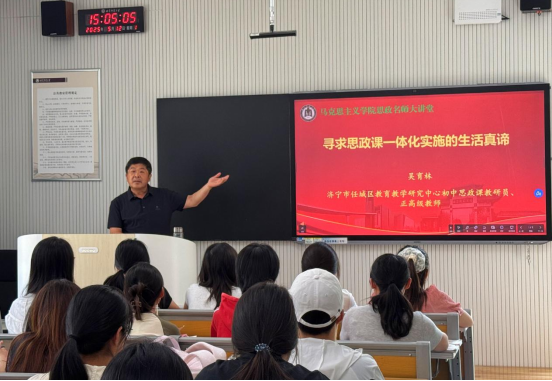 曲阜师大马克思主义学院讯 5月12日,马克思主义学院举办“思政名师大讲堂”第二讲。本次报告会特邀济宁市任城区教育教学研究中心初中思政课教研员、山东省教学能手、正高级教师吴育林担任主讲嘉宾。