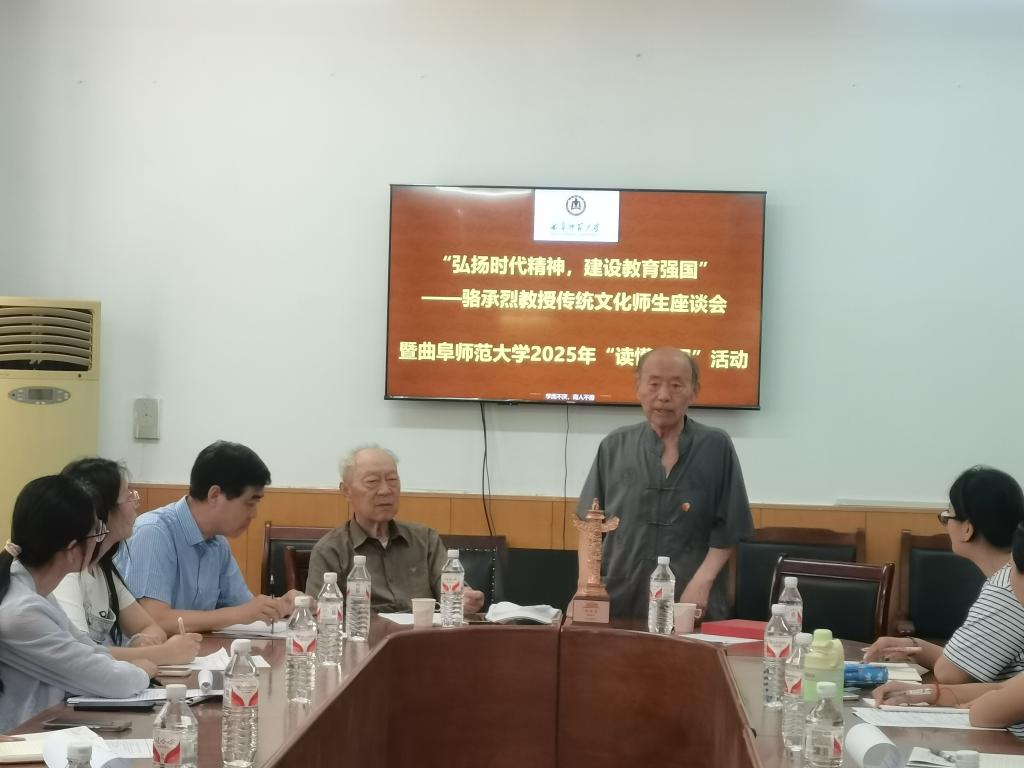 座谈会上,骆承烈教授以“弘扬时代精神,建设教育强国”为主题,结合自己从事中国历史研究70余年的情况与感悟,阐述了传统文化与时代精神的内在联系,引导青少年传承传统文化,发奋学习,努力成才。