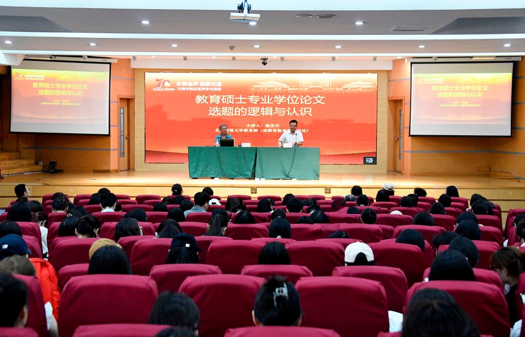 曲阜师大研究生处讯 6月9日,全国教育专业学位研究生教育指导委员会秘书处原秘书、北京师范大学翟东升教授应邀来校,为曲阜师大师生作了题为《教育硕士专业学位论文选题的逻辑与认识》的报告。曲阜师大研究生处处长唐爱民主持报告会,相关学院分管研究生工作副院长、教育硕士研究生导师、研究生教学秘书、2023和2024级教育硕士及研究生处工作人员参加活动。