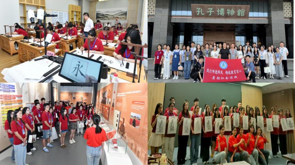 现场教学环节,同学们在软笔书法的课程体验中涵养耐心与专注力,感悟教育工作如书法般精雕细琢的匠心精神。在教师博物馆、孔子博物馆、孔府孔庙,透过一件件文物、一段段历史,触摸教育先辈的育人初心,体悟尊师重道、修身立德的重要意义;聆听教育家精神主题微课,了解师道传承、敬仰师道楷模;体验拓印、投壶等非遗国粹,感受杏坛讲学的文化底蕴。