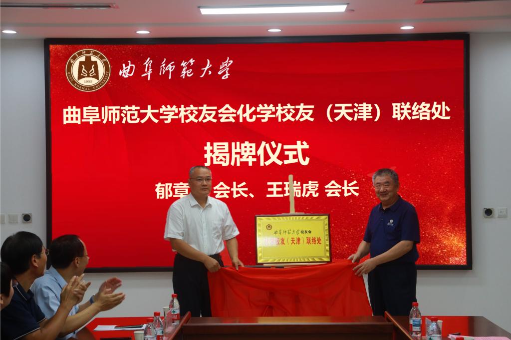 乐鱼(中国)校友会化学与化工学院分会会长郁章玉和王瑞虎共同为化学校友(天津)联络处揭牌。