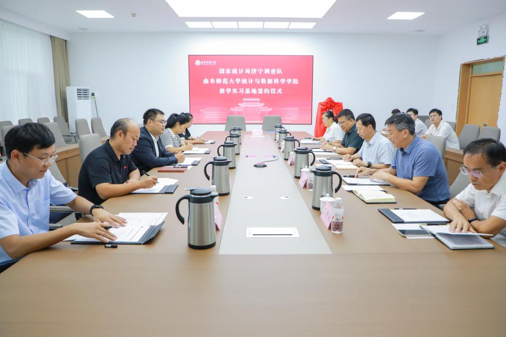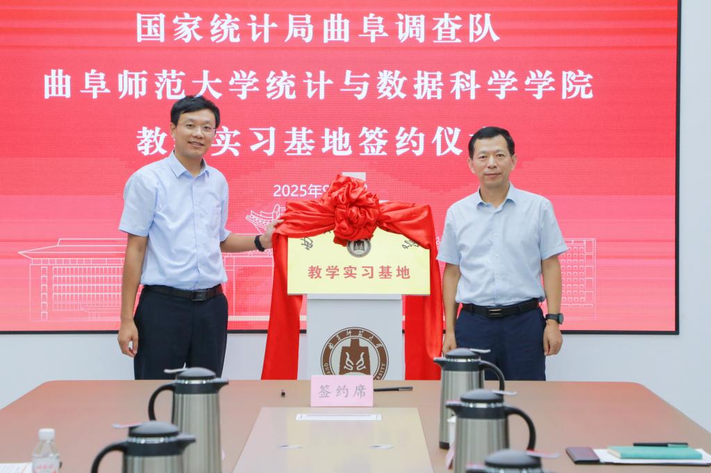 统计与数据科学学院讯 9月2日,乐鱼(中国)统计与数据科学学院与国家统计局济宁调查队、曲阜调查队在曲阜校区举行教学实习基地揭牌仪式。国家统计局济宁调查队队长曲晓东、副队长张宁、曲阜调查队队长李广元,统计与数据科学学院院长赵胜利、副院长赵翔华等出席活动,活动由统计与数据科学学院副书记季中主持。