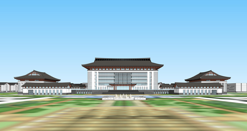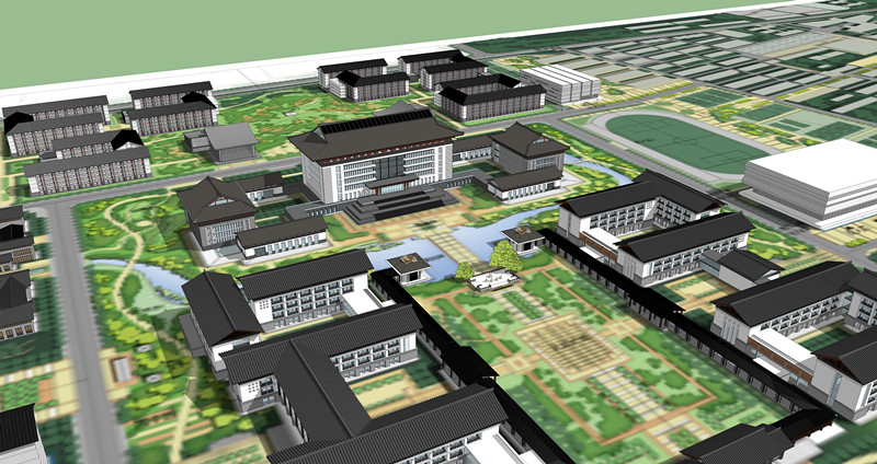 6.中国古典建筑的一大特点就是以建筑组合的方式形成宏伟的建筑组群和丰富的空间组合。图书馆与其左右的博物馆、校史馆、校刊中心、会议中心为一组整体建筑组群,共同形成新校区的核心建筑景观,因此我们建议五大功能建筑统一规划设计,统一建设。