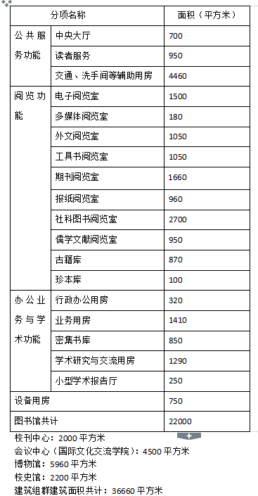 1.落实和细化了图书馆各项功能要求。校刊中心、会议中心、博物馆和校史馆功能也相应进行了优化设计。后附面积指标表。