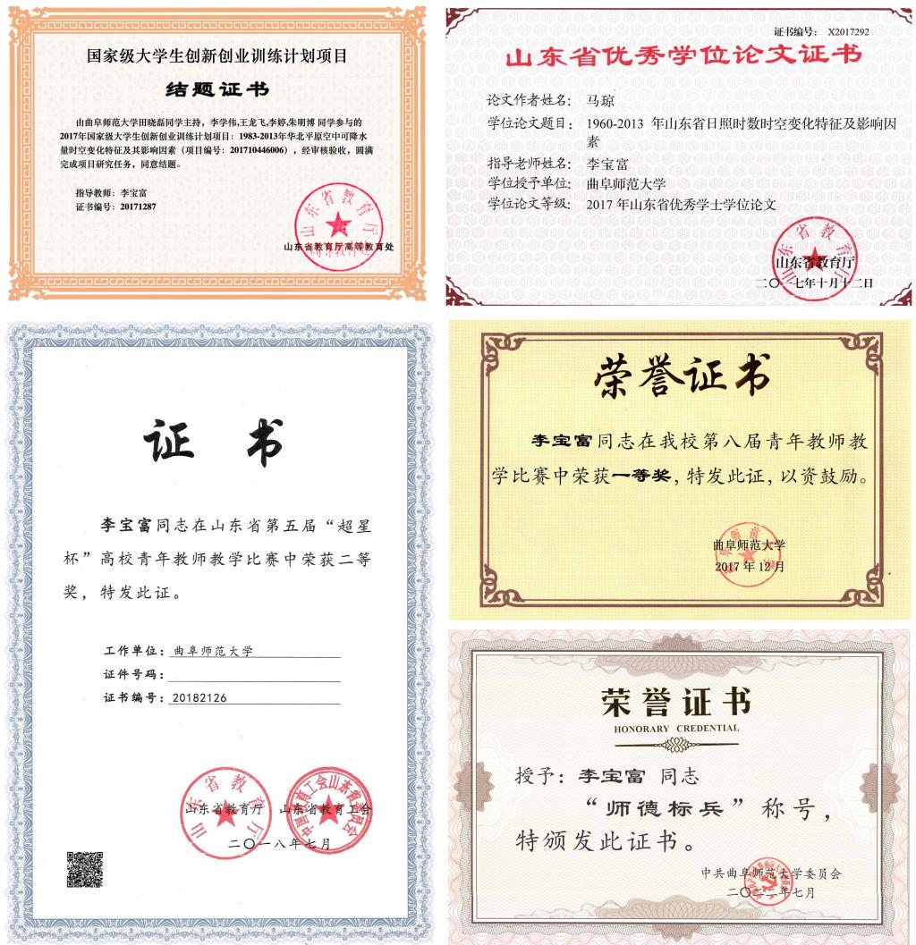 李宝富教授部分荣誉