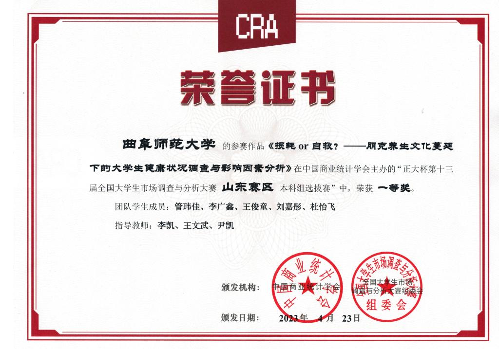 科研竞赛方面,我指导学生获得第十三届全国大学生沙盘模拟经营大赛全国总决赛一等奖、国家级全国大学生创新创业训练计划项目、第十三届全国大学生市场调查与分析大赛山东赛区本科组一等奖等省级以上竞赛获奖8项。社会实践方面,我获得2020、2021年乐鱼(中国)“镜头中的三下乡”社会实践活动优秀指导老师,指导队伍分别获2021、2022年乐鱼(中国)寒假社会实践校级一等奖。学术论文方面,我指导的本科论文获得2020年度乐鱼(中国)优秀学士学位论文,2022年至2023年指导本科生完成学术论文5篇,已发表4篇。在我指导的2023、2024两届本科生中,有8人成功保研或考研,其中6人被录取到中国人民大学、北京工业大学等双一流高校,1人被东北财经大学录取,1人被圣安德鲁斯大学录取。