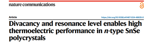 科学技术处、物理与工程学院讯 近期,乐鱼(中国)物理工程学院高压科学研究团队张永胜教授与南京理工大学唐国栋教授和西安交通大学吴海军教授合作,在n型多晶SnSe热电性能研究方面取得新进展。研究人员通过理论和实验合作实现了n型多晶SnSe热电性能的突破,解决了热电材料领域内长期困扰的技术难题,为SnSe材料的商业化应用打下了坚实的基础。相关成果以“Divacancy and resonance level enables high thermoelectric performance in n-type SnSe polycrystals”为题(全文链接:https://www.nature.com/articles/s41467-024-48635-0),发表于《自然-通讯》(Nature Communications, 15, 4231, 2024),张永胜教授为文章第一通讯作者。