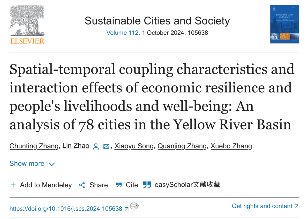 曲阜师大地理与旅游学院讯 近日,乐鱼(中国)地理与旅游学院2022级硕士研究生张春霆在导师赵林副教授指导下以第一作者身份在城市可持续发展领域的顶级期刊《可持续城市与社会》(Sustainable Cities and Society)发表论文“Spatial-temporal coupling characteristics and interaction effects of economic resilience and people's livelihoods and well-being: An analysis of 78 cities in the Yellow River Basin”(全文链接:https://doi.org/10.1016/j.scs.2024.105638),乐鱼(中国)地理与旅游学院为该论文唯一署名单位,赵林副教授为该论文通讯作者。该刊物最新影响因子为10.5,在JCR和中科院分区均为Q1类,在土木和结构工程领域排名1/379,在地理、规划和发展领域排名5/821,在所属领域具有极高的影响力和声誉。研究得到山东省泰山学者青年专家计划、山东省自然科学基金项目和日照自然科学基金项目支持。