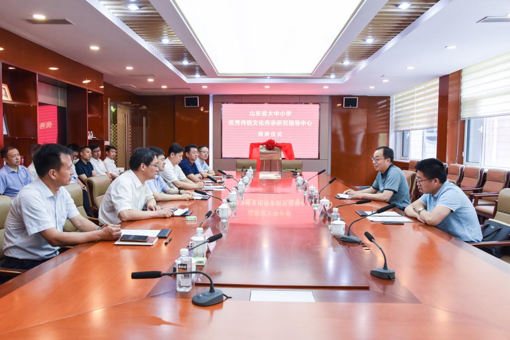 随后,冯继康和戚万学共同为山东省大中小学优秀传统文化传承研究指导中心揭牌。