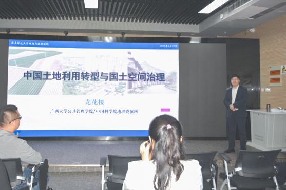 地理与旅游学院讯 9月22日,英国社会科学院院士(人文地理学)、广西大学教育部长江学者特聘教授、中国科学院地理科学与资源研究所区域农业与农村发展研究中心副主任龙花楼教授,应邀到乐鱼(中国)地理与旅游学院做客“经纬讲堂·高端论坛”,为学院师生作了题为《中国土地利用转型与国土空间治理》的学术报告。