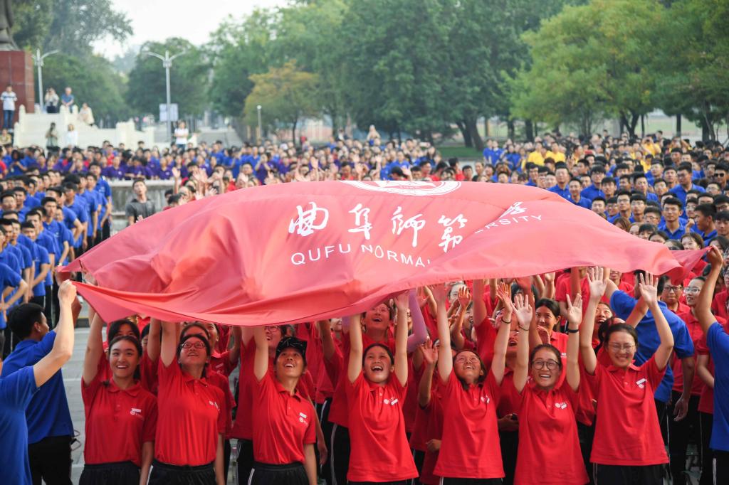 二人对话:以中国传统书法艺术为表现手段,写就两个“人”形符号,二人相对而坐,如切磋辩论,又如促膝谈心,知识传播自二人始,教育自二人始,仁爱之心也自二人始,“二人对话”的结构,直观地体现了以人为本的教育理念,体现了曲阜师大人对学术和教育的本质理解,内涵丰富,中国伟大的教育家孔子2500多年前在曲阜杏坛设教,并有《论语》传世,印证了教育就是人和人的相互影响,学术就是人和人的对话。孔子与弟子们坐而论道,教学相长,开辟了中国教育的先河,其“学而不厌,诲人不倦”的经典语被曲阜师大奉为校训。学校的校徽和校训皆源自于孔子思想,二者有机统一,相得益彰。