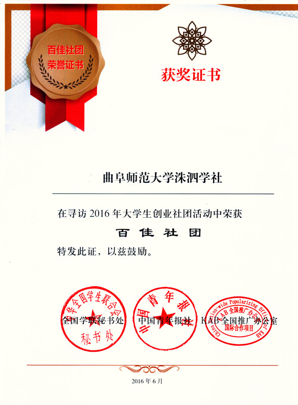 历史文化学院洙泗学社荣获2016年大学生创业社团