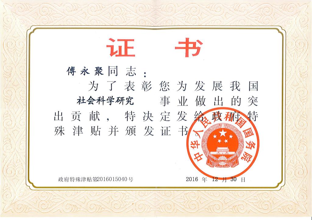傅永聚教授入选享受国务院政府特殊津贴专家