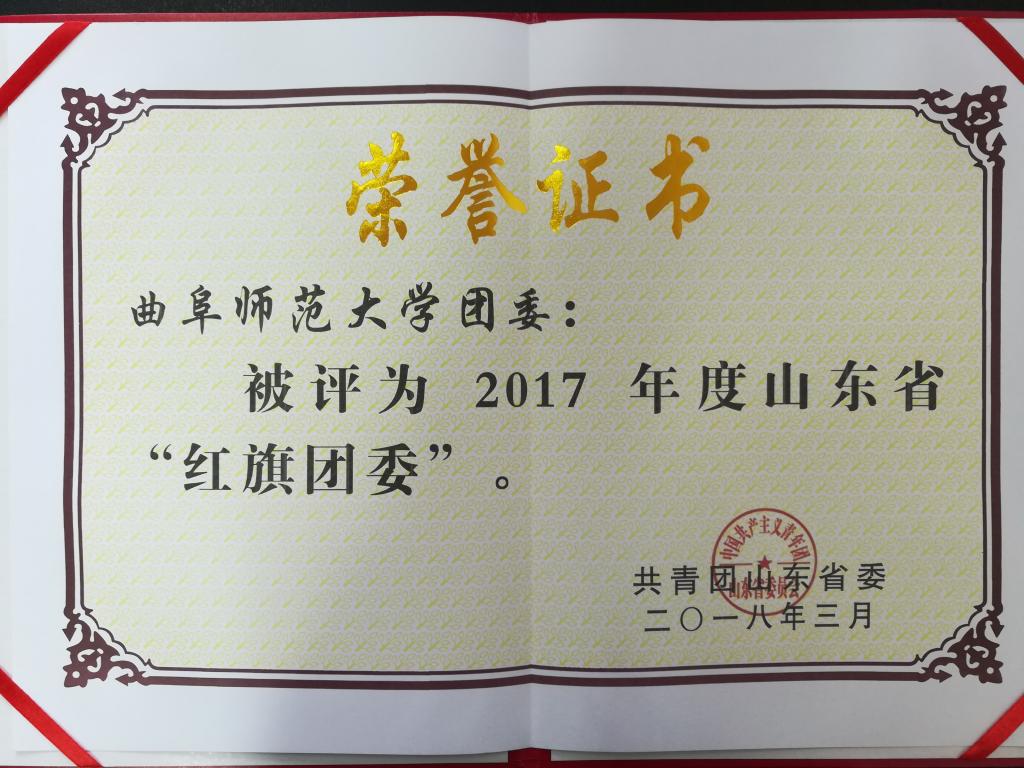 我校团委荣获2017年度山东省“红旗团委”