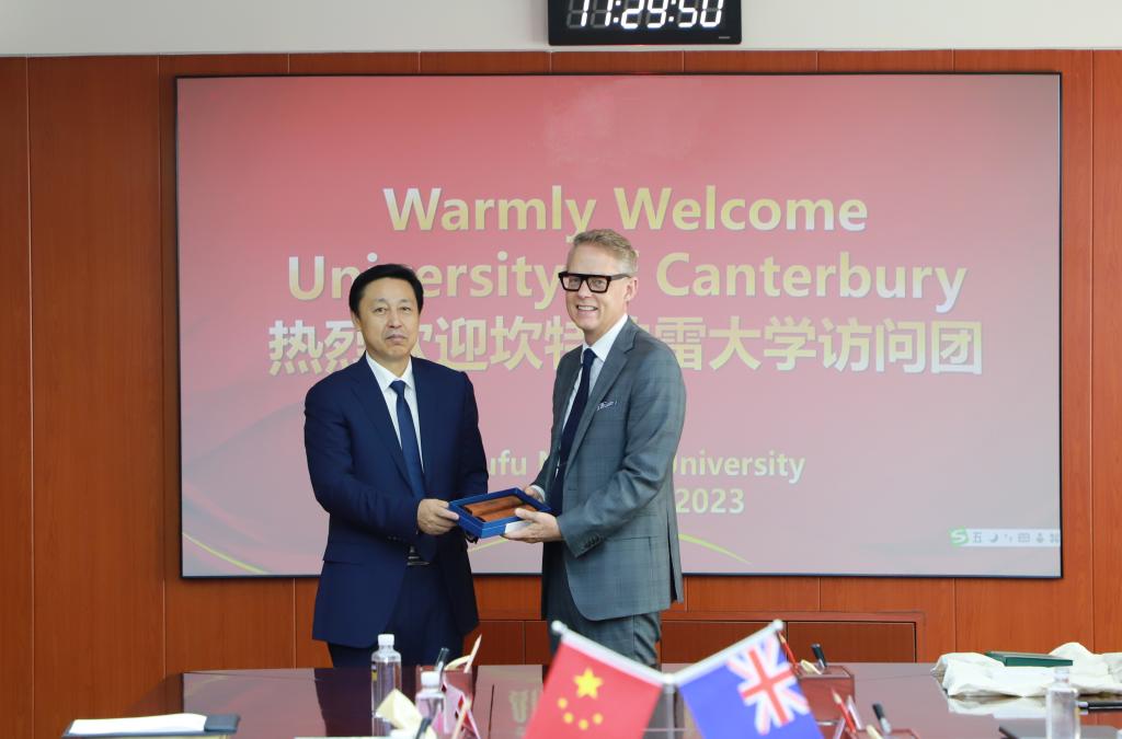 曲阜师大国际交流合作处讯 8月22日上午,新西兰坎特伯雷大学副校长Brett Berquist一行到访曲阜师大。曲阜师大党委副书记、校长张洪海会见来宾并举行座谈。张洪海对Brett Berquist一行来访表示欢迎,介绍...